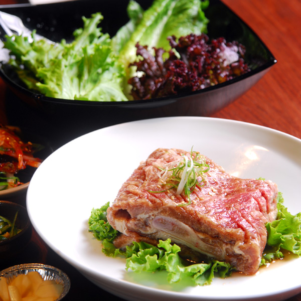 用蔬菜包著食用。這是韓國最大眾化的肉類料理。
