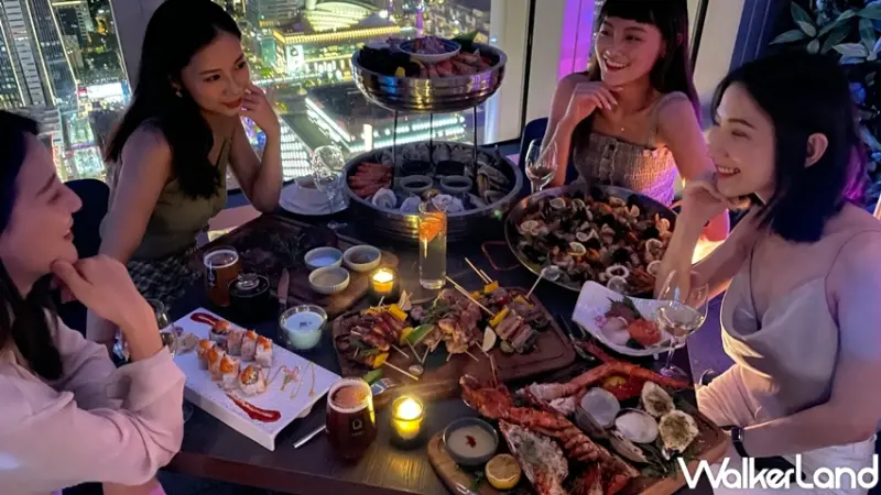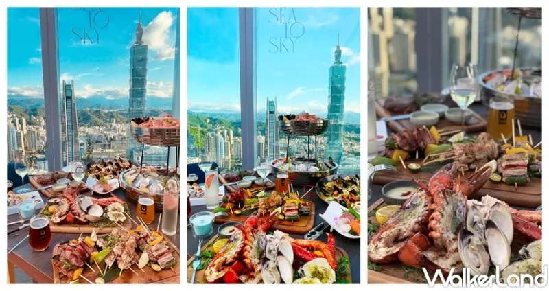 信義區最新「高空海鮮餐酒吧」SEA TO SKY推出「中秋霸氣BBQ高空海陸大餐」。套餐內容包含「海陸美味吃到飽」USDA PRIME牛排、西班牙海鮮飯、烤肉串、綜合生魚片、螃蟹海膽捲、干貝、草蝦、白蝦、鮭魚味噌湯、烤棉花糖…等海陸美味無限續點。