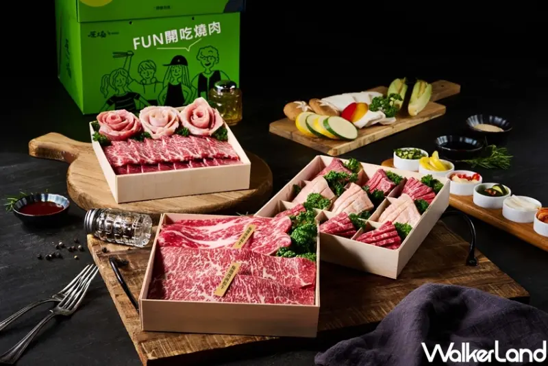 和牛盛宴烤肉禮盒售價2088元:嚴選澳洲M8和牛,搭配霜降無骨牛小排、雪花牛、霜降牛、雪花牛、松阪豬、雪花豚,組合成6種嚴選肉品,另有5種蔬菜杏鮑菇、香菇、櫛瓜、玉米筍、紅黃椒及漬物六小福:蔥鹽醬 、韓式泡菜、蒜頭辣椒、黃檸檬、醃漬櫛瓜、醃漬大根,人氣沾醬:味噌醬、水果醬,讓饕客在家也可以享受高質感燒肉。