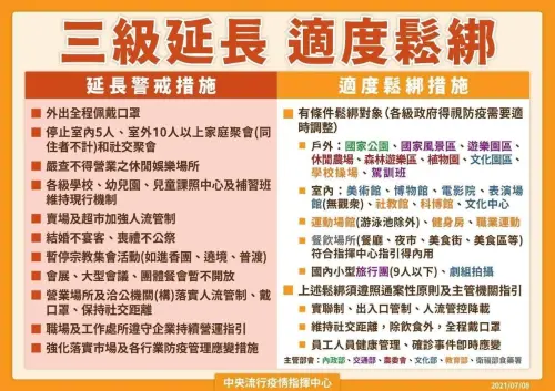 因應新型冠狀病毒全國二級防疫警戒,請每一位國人遵守下列三點:「戴緊口罩、保持社交距離、落實防疫措施」。