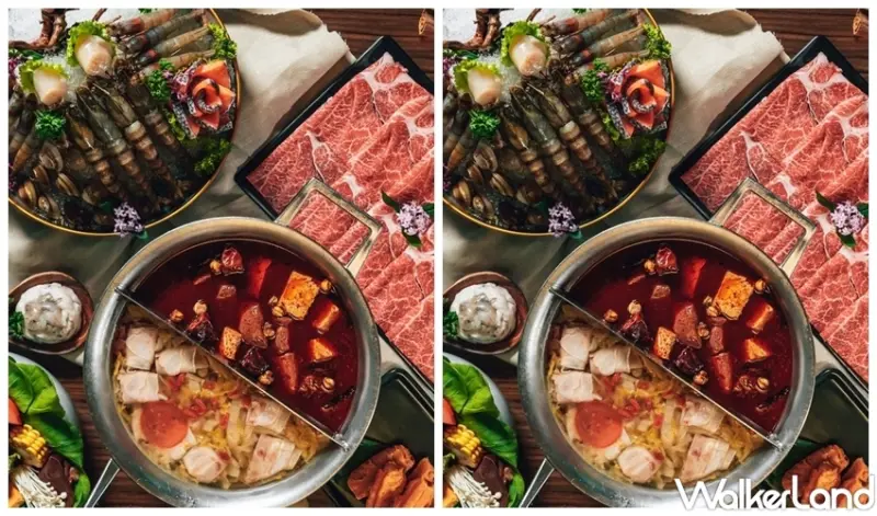 鴛鴦鍋底(青花椒麻辣鍋、酸菜白肉鍋)、極上和牛霜降、安格斯低脂牛、雪花牛、5種頂級海鮮、綜合丸、秘製酸梅汁、老油條、鮮蝦滑、彩蔬寶盒、滷味拼盤、美人銀耳釀,滿足挑惕味蕾。