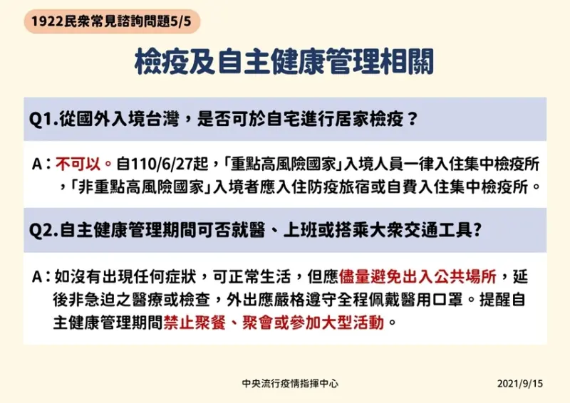 而關於Delta病毒株解隔離將加嚴,羅一鈞說明,9月3日指揮中心有公布,針對確診病例,必須經過2次PCR陰性或大於等於30,才可解隔離。其他入境旅客則按照目前規定,到機場前提供3日PCR陰性證明,後於檢疫旅館、檢疫所檢疫,期間居家快篩,期滿前再做一次PCR採檢,維持不變。