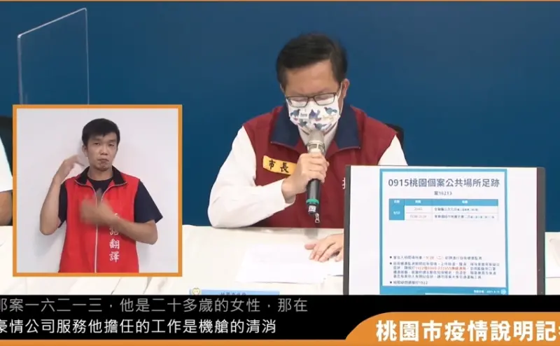 關於今日一起本土案例,指揮官陳時中表示:該個案是清消人員,曾打過1劑疫苗,其足跡均已完成清消,家庭和工作場所接觸者已經匡列45人;指揮中心醫療應變組副組長羅一鈞則說,該女檢驗Ct值為14,目前透過快速檢驗,確定病毒株也是Delta。同時,桃園市長鄭文燦表示:該員為桃勤清消人員,相關疫調都在進行中。
