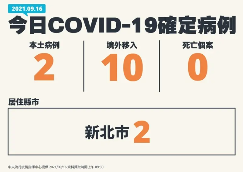 針對今日疫情案例,中央流行疫情指揮中心今(16)日公布國內新增12例COVID-19確定病例,分別為2例本土及10例境外移入;另確診個案中無新增死亡。