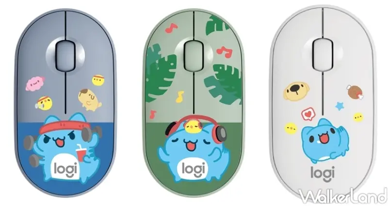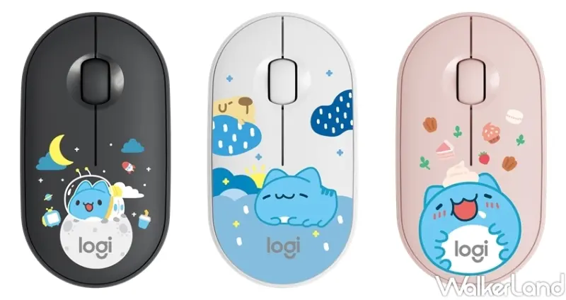 其中,在無線滑鼠組合方面,一共有5款咖波手繪插畫搭配仿鵝卵石外型、圓潤光滑的Pebble M350無線滑鼠。包括了,人在公司心不在的「宇宙漫遊」、吃飽想睡的「飽睏躺躺」、體重如浮雲的「發福甜點」、懶得出門的「居家健身」與整個世界都是咖波演唱會的「森林巨星」。放在辦公室桌上,都會「認同事」忍不住多看兩眼。