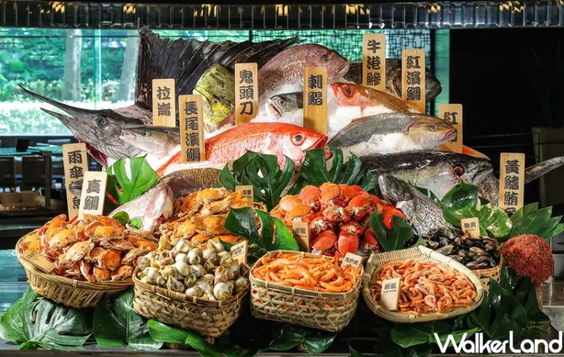 此外,餐廳中最引人矚目的360度海鮮檯,更匯集了三點蟹、旭蟹、熟白蝦、櫻花蟹、黑鑽草蝦等海鮮,每日從台東成功漁港新鮮直送的各式漁獲,由主廚們料理成生魚片、握壽司、客製化的手捲。每日嚴選多款豐美的當令漁獲,透過主廚精湛的刀工及廚藝製成,是喜愛日式海鮮料理的消費者絕對不容錯過的。