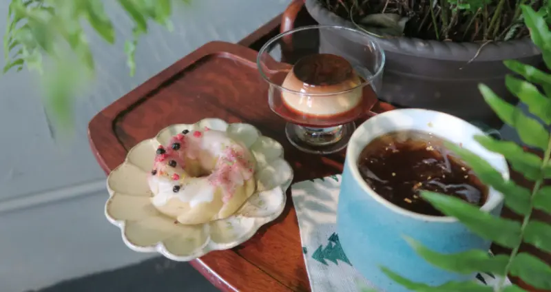 鬱鬱還有一大招牌是甜點和咖啡。磅蛋糕特別選用日本上白糖製作,除了甜度降低,還有細膩的口感,而桂花風味的美式更是搭配點心的決勝關鍵。店家的用心與功力,在餐飲的製作上充分展現。