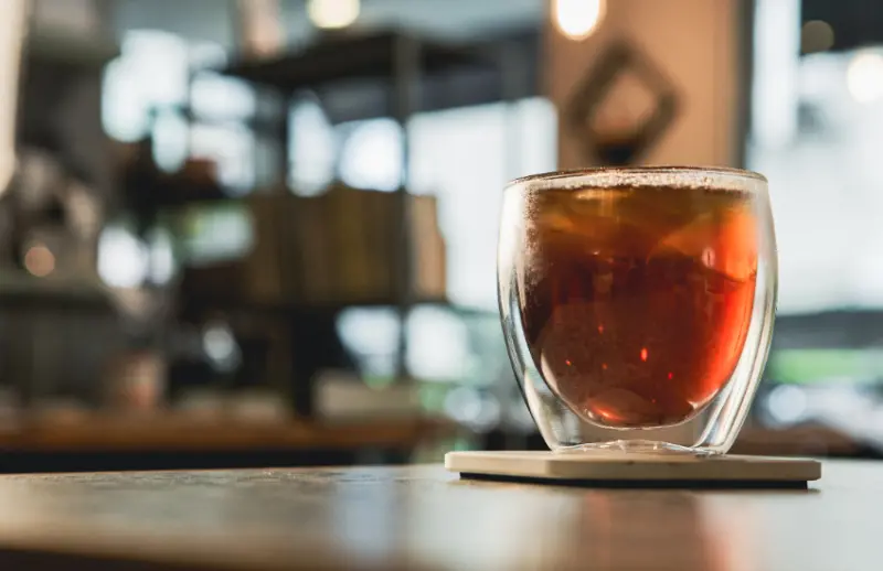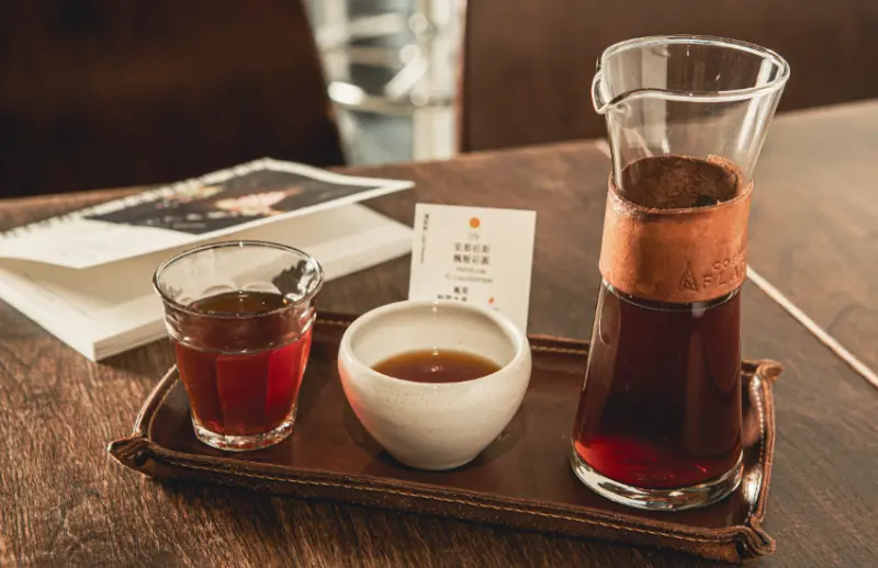 如同酒一般,咖啡運用不同杯器盛裝,所嘗到的口感風味也會不同。熱飲的部分,COFFEE FLAIR都會提供兩種杯器,建議先以玻璃杯飲用,宏都拉斯楓樹莊園的果酸感會被明顯的帶出,能感受到咖啡風味整體層次被拉的鮮明俐落;接著再用店家特製的陶瓷杯品嘗,則會感受到風味變的圓潤而飽滿。