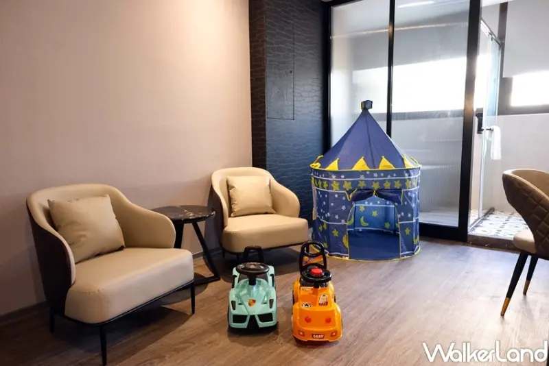 並且,為了搶攻親子客群,天子閣將三樓整層打造為温馨家庭房和孩童遊憩區,直接把戶外小帳篷及汽車搬進房裡,給兒童可盡情玩耍,免去家長在各樓層間奔波。同時,孩童遊憩區與高雄PaPark爬爬客親子樂園業者合作,打造出南部獨一無二的飯店親子兒童樂園、低塑木質板解決家長最擔心的安全及塵璊,讓兒童安全玩耍,每天將會定時消毒兒童樂園的設備,就是要讓大人和小孩玩得安心和健康。