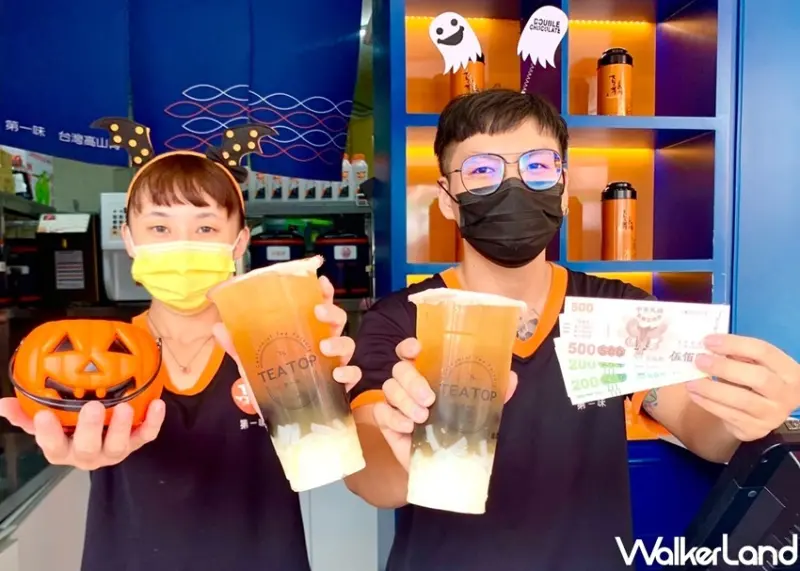 TEA TOP第一味表示,為了回饋大家,「TEA TOP第一味」將在萬聖節的10/30-10/31兩天推出限時優惠,只要在活動期間到店對店員喊出「不給糖就搗蛋」,即可免費獲得任選上限10元的加料一份,不管是增加口感的珍珠、椰果、仙草凍、西米露,還是增添美味的芋園、紅豆、粉粿、寒天、茶凍通通都能加好加滿。![]()