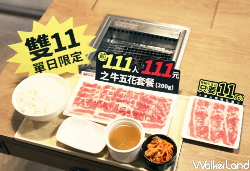 2、11月11日前111名入店用餐的顧客,即可以111元的價格享用「牛五花套餐(200g)」111元優惠。
