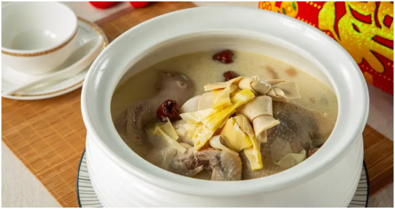 除夕夜來碗雞湯象徵清泰平安之意,但如果圍爐桌上有這道上海經典菜-醃篤鮮,那除了吉祥意涵外,更可說是不得了的美味。因為要把醃篤鮮烹飪得美味,那可是需要時間的工夫活。使用豬大骨、雞胸骨經小火熬煮湯頭,因此湯頭才會如此濃郁滑順,而台酒更添加料理高粱酒搭配精選土雞、桂竹筍、家鄉肉等食材,讓酒香襯托湯品更增添美味。