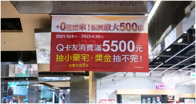 即日起-2022/4/30(六) ,Q 卡友凡持本人 Q 卡、當日消費發票,全館消費累計滿 5500元即獲抽獎機會乙次,於每月 1 號抽出 5 名,預計共抽 5 次(11/1、12/1、1/1、2/1、3/1) 有機會抽中「儲值金 5000 元」,最後 2022/5/11 將再終極加碼抽出 50 名。