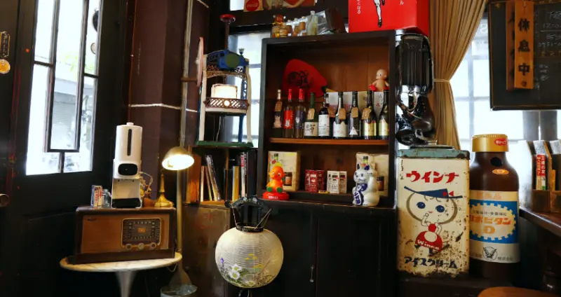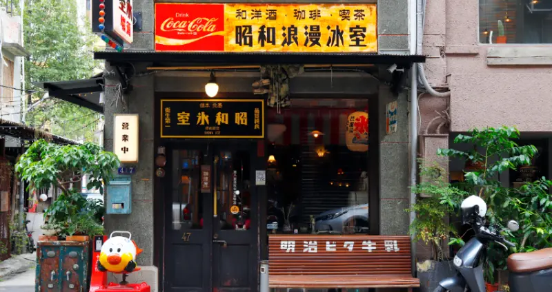 充滿老屋氛圍的昭和浪漫冰室,原本是店主人「社長」經營的古物店,收藏各式古董懷舊文物。2年前社長與友人決定將空間改造,以「大人味的聚會場」來設計原有場域,這裡1樓是日式風情的甜品冰室,2樓在夜晚則化身為英國風情的小酒館,讓昭和浪漫冰室在日夜呈現不同的迷人韻味。社長表示,昭和年代早期為台灣日治時期,台灣早年不少生活流行用品都由日本引進,也成為他的收藏品之一;昭和中晚期,仍有各自演繹的風土特色,而這些都可在店內一次看到。店內收藏包括各種商標、招牌、海報、杯盤、雜誌、生活家飾或家具等,在不同角落營造出不同的氣氛。事實上,有些家具還因為客人喜歡就下訂買走,也讓空間氛圍不時會有一些微小的改變。![]()