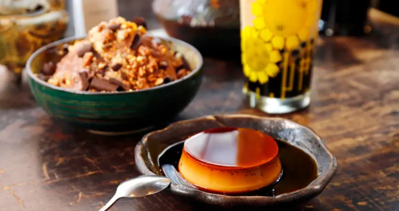 店內冰品以各式牛乳雪花冰為主,搭配數款招牌甜點、飲品,以及下酒小食與少數熱食,冬天還有限定款的昭和熱巧克力威士忌、日式烤麻吉等,讓人暖心又暖胃。招牌雪花冰的冰磚均為店家自製,食材方面也下了不少功夫。其中結合酒飲的「大人系威士忌巧克力雪花冰」,將威士忌的酒香、苦甜巧克力的風味,以及北港百年慶豐行花生、麥片等的脆口口感融合在一起,碰撞出豐富的滋味;另一款人氣甜點手工醬燒布丁,則復刻昭和年代的做法,充滿濃郁的焦糖香味與扎實綿密口感,特別的是店內還有隱藏版的大人系布丁,以年代較久的威士忌製作,風味更特殊,唯需事先預訂。![]()
