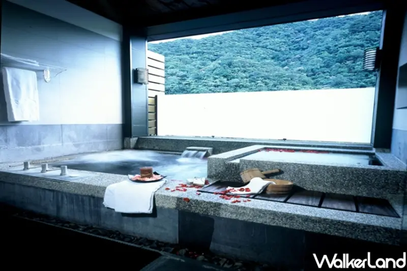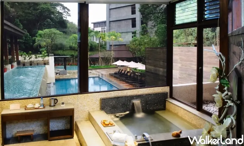 此外,位於北投的「日勝生加賀屋國際溫泉飯店」全館以日本建築技法精細雕琢,旅客可以在開闊的室內溫泉池眺望自然山景,一邊享受北投獨特的白磺泉,白磺泉屬弱酸性硫磺鹽泉,有助於舒緩疲勞,聞起來有濃厚的硫磺味,目前大眾池單人在KLOOK優惠價正好為1,000元,使用國旅券折抵,甚至不用付其他的費用。