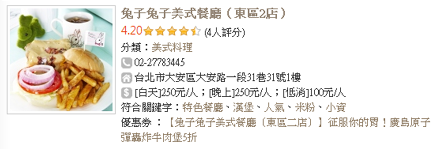 兔子兔子美式餐廳→當日壽星本人5折優惠