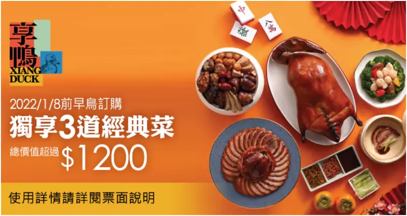 想來一桌強強聯手的人氣美味圍爐年菜?那就快點我! >除夕到享鴨取年菜 >除夕到丰禾取年菜