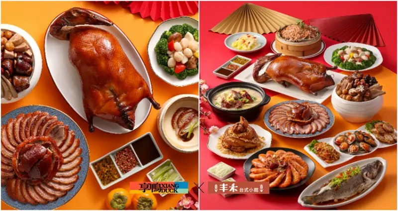 想讓今年除夕餐桌上亮點菜色一次網羅,收服全家老小胃口就選網路口碑人氣爆棚、訂位滿線不斷的享鴨櫻桃片皮烤鴨,以及連續蟬聯兩年政府認證經典辦桌台菜。經典尬潮流雙重享受輕鬆熱獻上桌。王品中餐聯手人氣烤鴨餐廳享鴨與政府認證全台12大傳承台菜餐廳的丰禾台式小館,強強聯手推出超豪華年菜組合「虎年雙享丰收宴」,以嚴選櫻桃鴨兩吃、清蒸鱸魚、極品佛跳牆、櫻花蝦米糕等經典大氣桌菜,除夕當日現做取餐熱熱吃,打造溫馨又完美的圍爐夜,現在立刻預購起來!