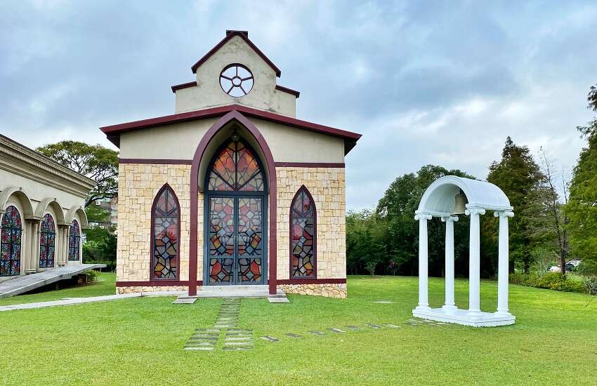 晶麒莊園本部是提供浪漫歐式婚禮的婚宴會館,自然要有婚禮互許誓言的浪漫小教堂!教堂位在草皮旁,門口裝飾著美麗的彩繪玻璃,也是許多人來此必留影的畫面,近拍會更好看!