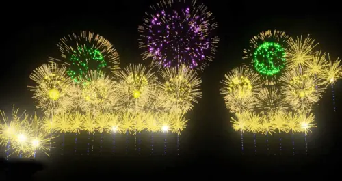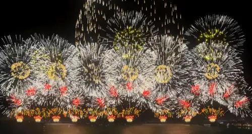 其施放的範圍連綿1公里,相較於台北101大樓足足高了2倍,透過夜晚河水倒影,並且採用日本七彩千輪(彈中彈)及手工排列3D造型彈,以日本升空煙火模式施放,超過1萬發煙火都添裝「虎尾引信、生小花煙火」,讓煙火在空中綻放更精彩、更好拍。無論是在淡水河岸還是八里左岸,都能輕鬆拍到最浪漫的新北跨河煙火。