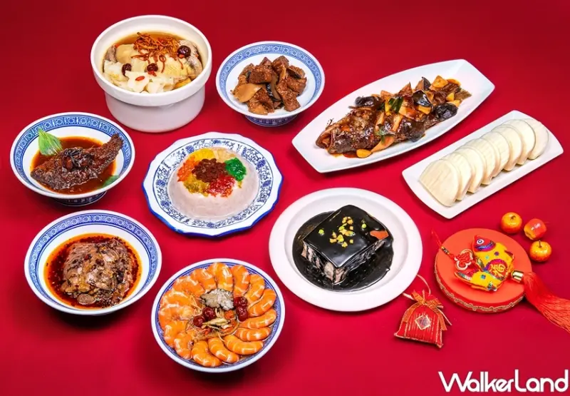 此外,台北凱達大飯店家宴中餐廳今年首度推出的御膳鮮凍年菜組,包含了:「蔥烤鯽魚」、「蜀香醬豬肉」、「四季烤麩」、「宮廷花雕蝦」、「墨跡東坡肉(附餅皮)」、「大蒜北菇泉水鱸」、「黃金蟲草花膠雞」、「八寶芋泥」,八大道6人份定價4,860元,首年嚐鮮優惠價只要3,888元。