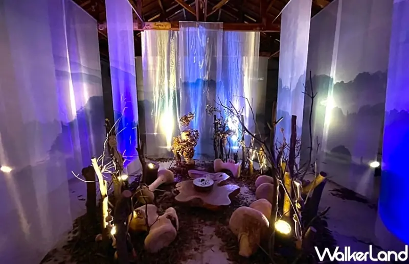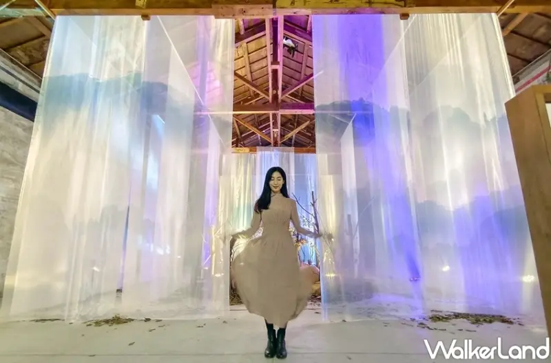 「2021高山茶都・嘉義」於嘉義縣中埔鄉農會金蘭分部打造期間限定的網美打卡點,並以「茶,設計」作為主題,規劃6大主題館,其中「茶x音樂」以孤枝落葉搭配大片落地的紗幕,營造若影若現的神秘氛圍感,「午茶x花」則將水彩畫佈滿整個老穀倉的牆面,以「畫中花,花中茶」的意象設置,隨便走拍都是一張張IG美照。