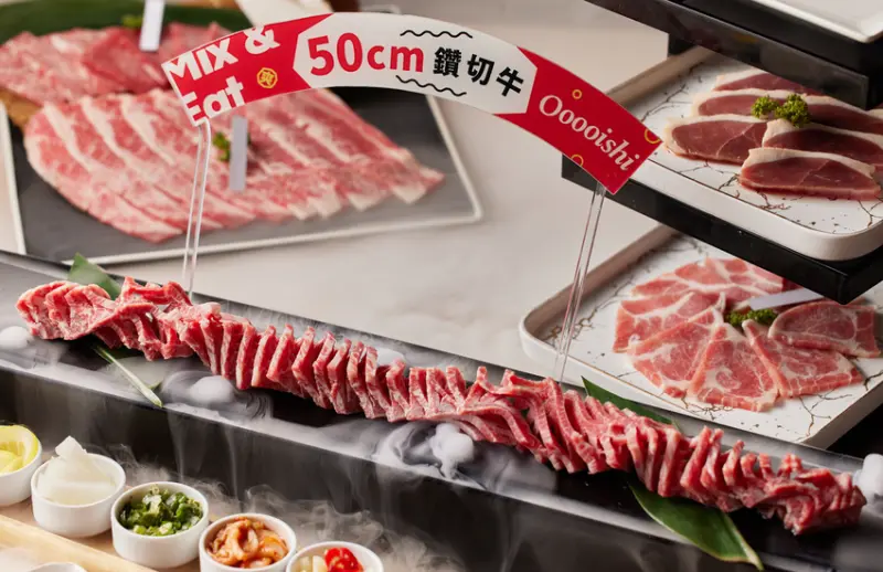 只有Oh my!原燒吃的到的華麗巨星鑽切牛雙人套餐,⻑ 50 公分、重為 7 oz、厚 0.6 公分、寬 1 公分深的鑽切⽜,不僅一頭牛僅供10客,搭配主廚赴日學習的「鑽石切割法」,以手切斷面、增加燒烤面積,由專⼈代烤,並將牛肉烤到表面微焦,焦香的油脂散發陣陣香味,咬上一口感受鮮嫩的肉汁在嘴裡奔騰,搭配獨特醬汁,更有多層次的風味。