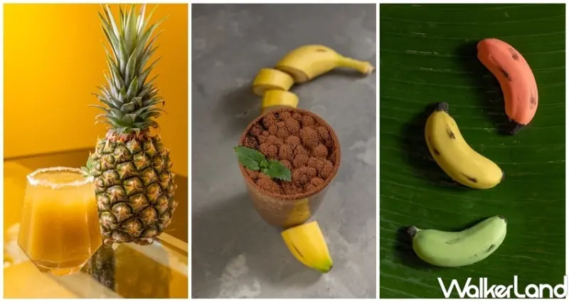 而綠色的香蕉裡,則是用茉莉綠茶做成慕斯,搭配鳯梨和香蕉煮出來的果餡,並吃得到鳯梨果肉的口感。而「限定版紅色香蕉」,其實香蕉裡真的有紅皮的品種,名為「蘋果香蕉」,在紅皮香蕉裡填入冬季盛產的草莓慕斯,並搭配紅心芭樂和無花果餡,呈現如同戀愛般的酸甜口感,是只有在冬季限定的特殊口味。