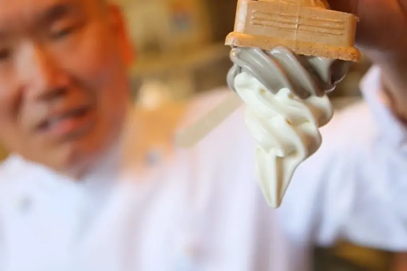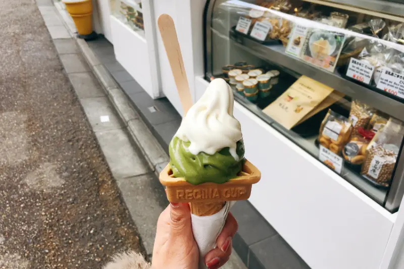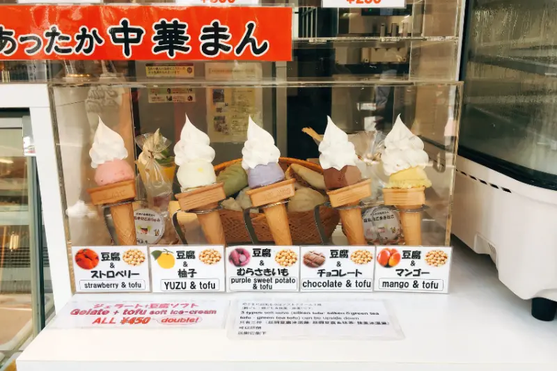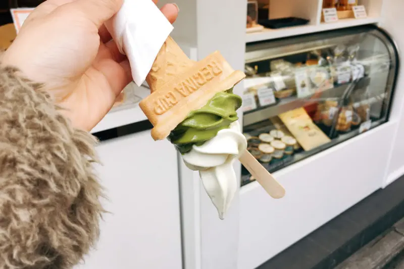到京都嵐山時,除了走一趟渡月橋、在清幽竹林中拍照、吃一餐湯豆腐之外,這幾年有很多遊客來這裡時,都不忘順路到已有20年歷史的甜點店「京豆庵」買支冰淇淋。這裡的冰淇淋之所以會成為網路打卡熱點,就是因為那豆腐霜冰淇淋,竟然能夠違抗地心引力,以倒立的姿勢拿著也不會掉在地上。![]()