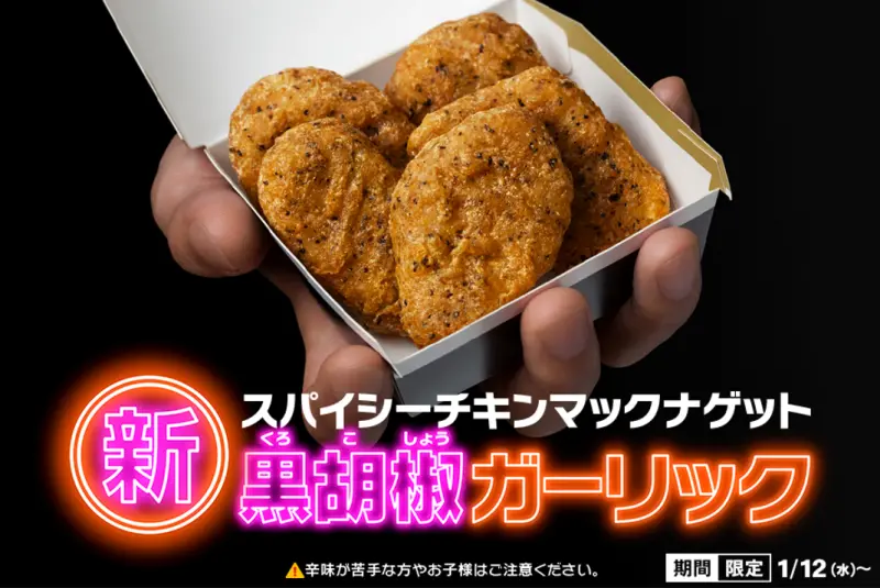 創意多多的日本麥當勞,時隔3年又推出全新口味的麥克雞塊,這次的風味是超級唰嘴開胃的「辣味黑胡椒大蒜雞塊」,特色是外皮酥脆、肉質多汁,裡頭的雞肉以白胡椒和辣椒等辛香料調味,外層則混入了黑胡椒及大蒜,不同層次的口感與辣度交疊,相信能夠滿足嗜辣者的味蕾。![]()