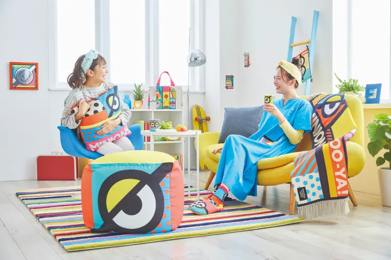活潑好動的小小兵系列則使用了大膽又鮮豔的用色,足以彰顯角色們鬼靈精怪的個性,睡衣、靠墊、餐具、拖鞋等居家用品都染上了小小兵身上專屬的黃色與藍色,就是希望粉絲們在家也能充滿活力,讓待在家中的時光增添趣味。