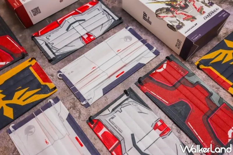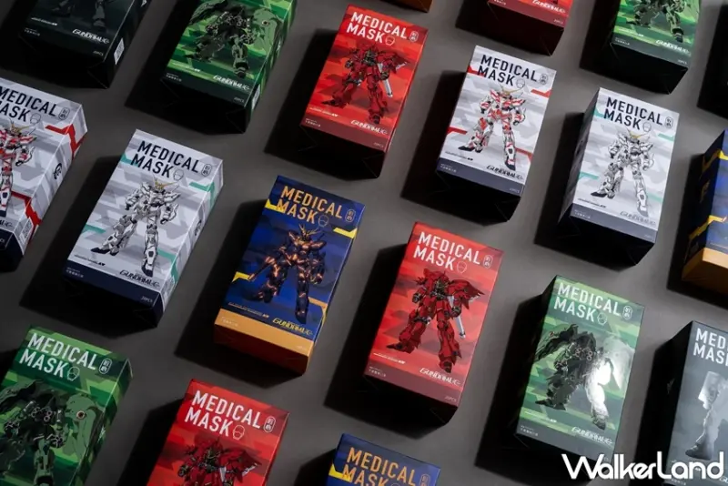最後,「鋼彈聯名口罩–數位迷彩系列」以獨角獸、新安洲、剎帝利、報喪女妖及薩克等機體的配色做為設計概念,讓鋼彈迷戴上口罩,低調地支持喜歡的機體外,也能滿足非鋼彈粉的日常佩戴。