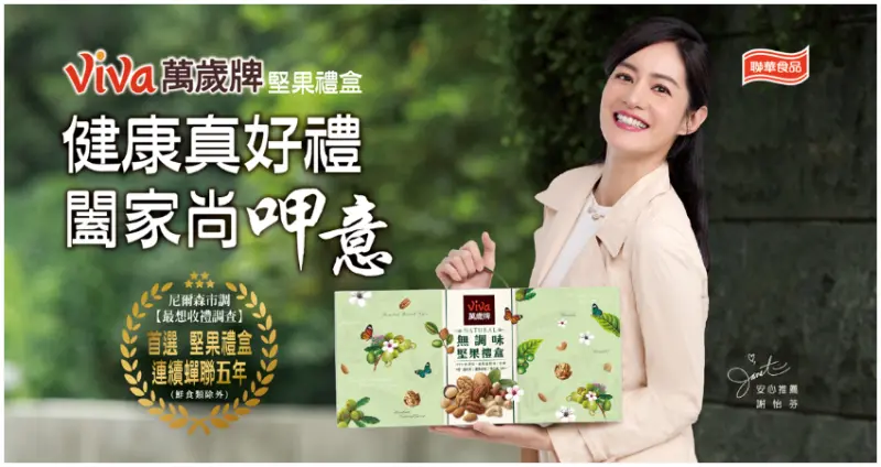兼顧健康及美味的「堅果禮盒」,已連續五年蟬聯尼爾森市調「消費者最想收到禮盒」第一名,成為不少民眾送禮、收禮的首選。而萬歲牌「養生堅果禮盒」、「活力堅果禮盒」及「杏福有魚堅果禮盒」今年升級加入「萬歲牌堅果飲」,內含多種堅果及穀物,「喝的堅果」隨時保持健康,更是貼心好選擇,送給敬重的長輩、重要的親友們,大氣又富含心意。送禮,當然要將最無價的健康送到重要的人手中。![]()