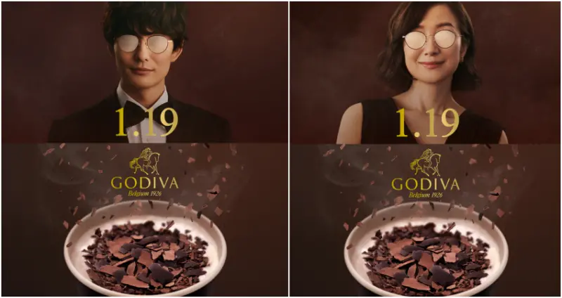 ▲日本麥當勞還請來演員岡田將生和鈴木京上戴上眼鏡,詮釋熱呼呼的GODIVA聯名可可。圖片來源/マクドナルド
