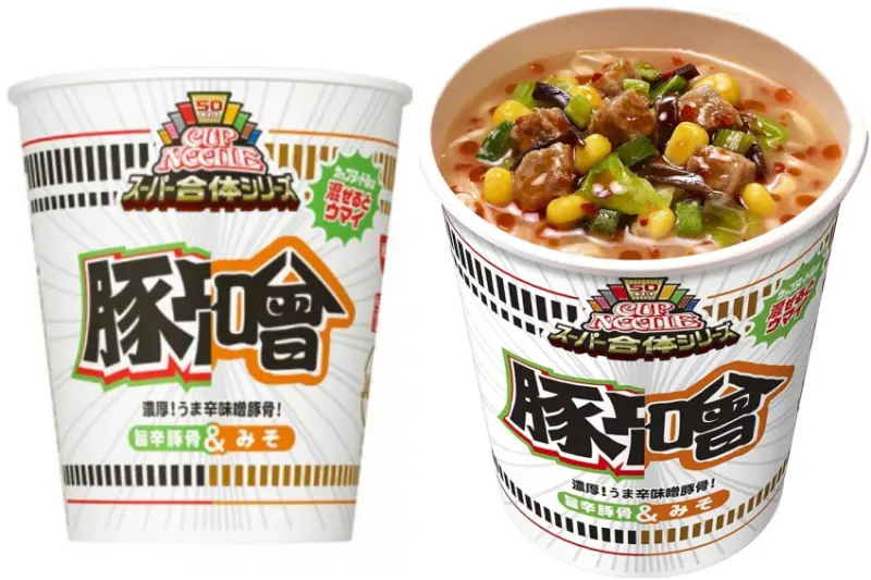 其實日清在2020年也曾推出一起食用這兩種杯麵的企劃,代表這樣的吃法應該受到不少網友推崇,因此這次理所當然變成本次的合體商品之一!湯頭以小麥味噌、紅味噌、白味噌等3種味噌為基底,再混入薑蒜熬煮出的豚骨湯頭,加上豬肉末、高麗菜、玉米、木耳等配料,辛辣又濃郁的風味就此誕生。