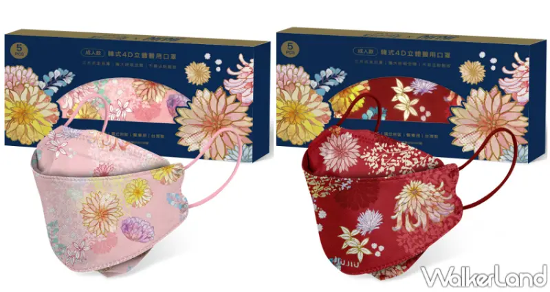 此外,立體口罩則推薦「傾國色」與「絢天香」,由藝術家露台上的波麗與口罩品牌JIU.JIU聯名合作,以日本京都與菊花作為設計主題,前者為低調奢華的緋紅色,後者為柔和粉嫩的柔粉色,獨立包裝更衛生,不易沾粉脫妝,適合各年齡層的女性。