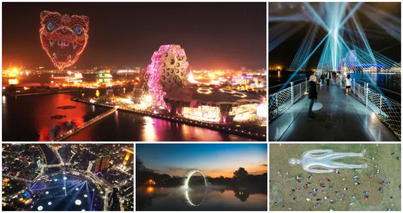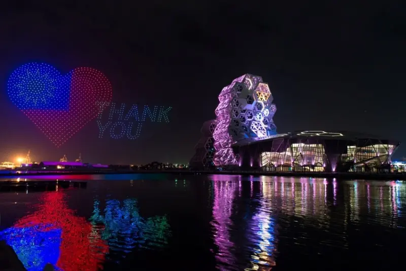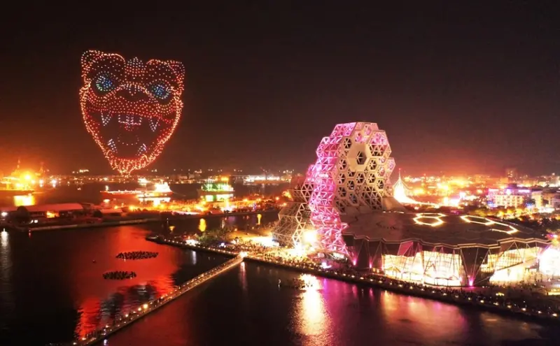 台灣燈會在高雄最熱門話題,一定就是空中主燈「聚光台灣虎星高照」!市府邀請國際大廠之專業無人機團隊,1500台無人機在愛河灣上空創作出最有故事的飛行主燈!3D立體圖案栩栩如生,包括較東京奧運開幕直徑增加35米的巨大旋轉地球。![]()