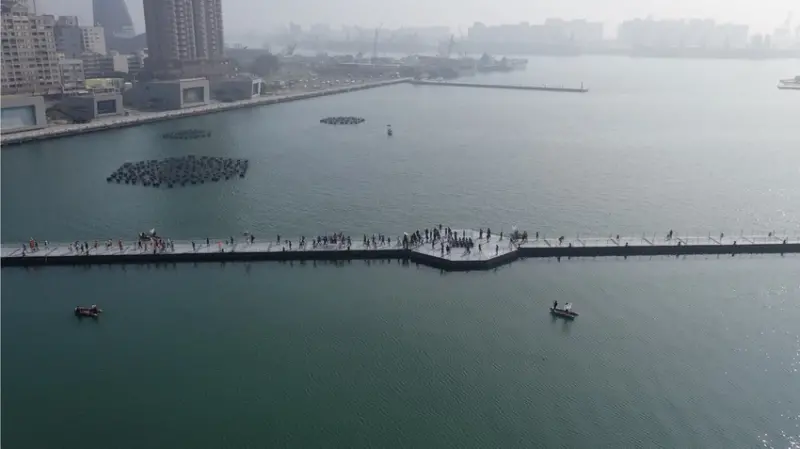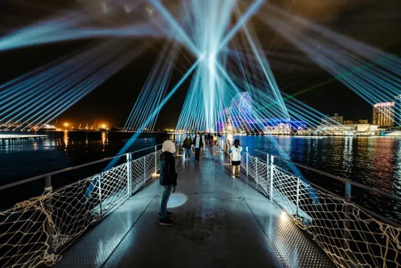本次高雄燈會展出許多充滿現代感與藝術感的燈會作品,首推位於愛河主燈區,台灣燈會期間限定的《大港虎橋》。以海事造船工法打造超過400公尺長的橋梁,橫跨真愛碼頭到光榮碼頭,在傳統民俗中,虎是鎮煞驅魔的象徵,名稱取自虎、浮、福的諧音,邀請民眾上「福橋」帶來福氣。想一覽海上風光的朋友,必須上台灣燈會防疫平台進行預約。![]()