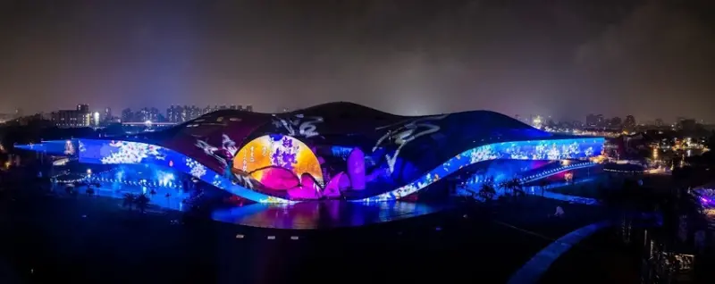 「島嶼記憶·光舟劇場」直接利用衛武營國家藝術文化中心建築物為載體,巧妙融合聲光變化與建築體,將台灣這座島嶼上所擁有的文化與記憶,以藝術表演的型態作為高雄主燈展現出美麗而炫目的風采,絕對值得一看!在2/1-2/28每日18:15-22:00間,每半小時演出一次!
