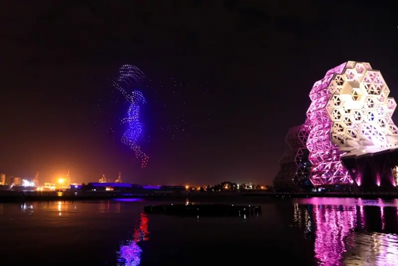 最誇張的飛行主燈亮相!!東奧開幕升級版1500台無人機閃耀高雄夜空!![]()