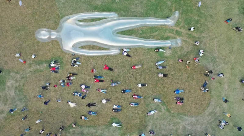 長達25公尺以上、來自日本的作品《空氣人》出自藝術家鈴木康広之作,燈會期間每天下午五點半,遊客可在草地與《空氣人》一起放鬆躺下,一整個月都能享受超療癒的「放風」樂趣!![]()