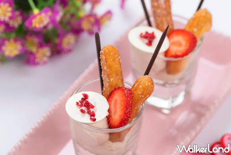 而「吉拿棒佐紅寶石人蔘巧克力香堤」,又香又脆的吉拿棒作為甜點主體,搭配加入紅寶石巧克力的香緹鮮奶油,使之呈現浪漫粉色,再以些許人蔘提味。拿著吉拿棒沾上柔軟滑順的鮮奶油,一口接著一口讓人回味無窮。