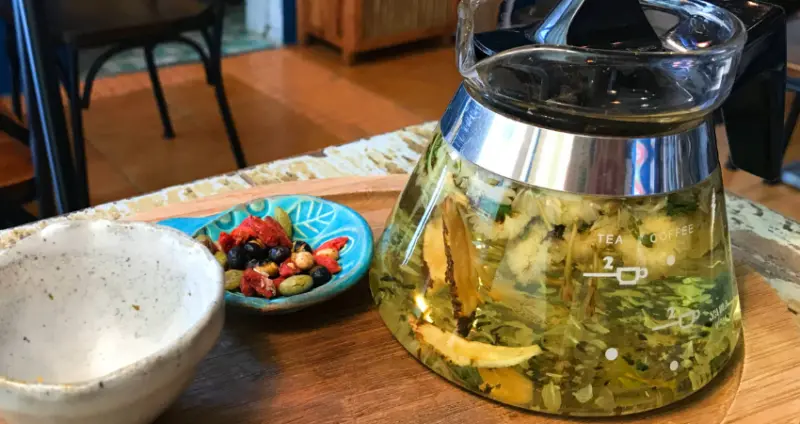 手艸生活供應漢方熱茶、漢方冰茶、漢方奶茶、漢方咖啡和台南創意小點心,在menu上,可以看到許多中藥湯常見的元素:例如補嗓子的羅漢果、川貝母;補氣的洋蔘、黃耆;補肝的黑棗、山楂,透過了Hugo悉心調配藥材特性和比例,中藥湯皆佐以花草植物入茶,例如甜菊、玫瑰、桂花、紅棗、薄荷等引出最天然的甘甜滋味,款款順口回甘耐喝,讓養生生活茶不用加糖或任何添加物,便能呈現多層次風味,更能使健康與好喝並行。![]()