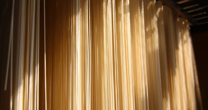 30年前,屏東市民族路一帶曾有近10家曬麵場,隨風飄動的掛麵秀幾乎是當地居民的日常街景,隨著機器生產技術引入台灣,生產規模擴大讓費時費工的傳統曬麵場難以抗衡,導致民族路僅剩下長安製麵一間專業製麵廠留存,供應高屏地區知名麵店、涼麵店至今。