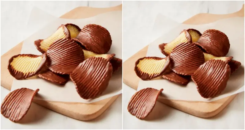 口感酥脆的洋芋片,包裹著厚厚的牛奶巧克力,鹹味和甜味的完美平衡讓人一口接著一口,一個不小心就整盒直接吃光光。