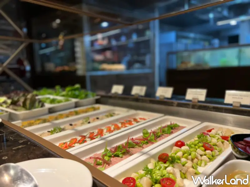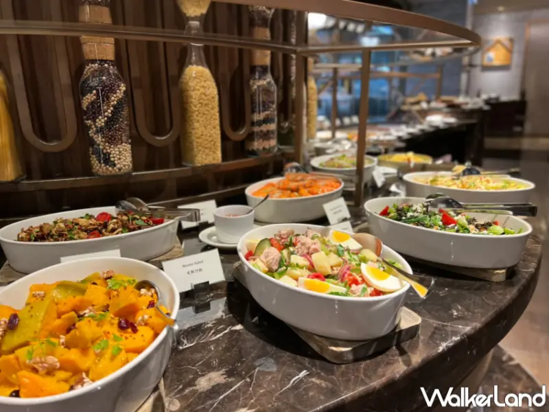 甜點區供應手工特製栗子蛋糕、馬卡龍、提拉米蘇及季節水果….等數十種餐點,義式沙拉吧除自助式餐點外,也包含湯品及咖啡或茶。
