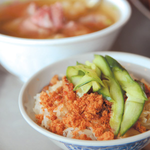圖左一:海洋20M咖啡館;圖左二:鄉味津海產;圖右二:蘇澳港廟口廖榮川米糕;圖右一:稻香園雞肉飯