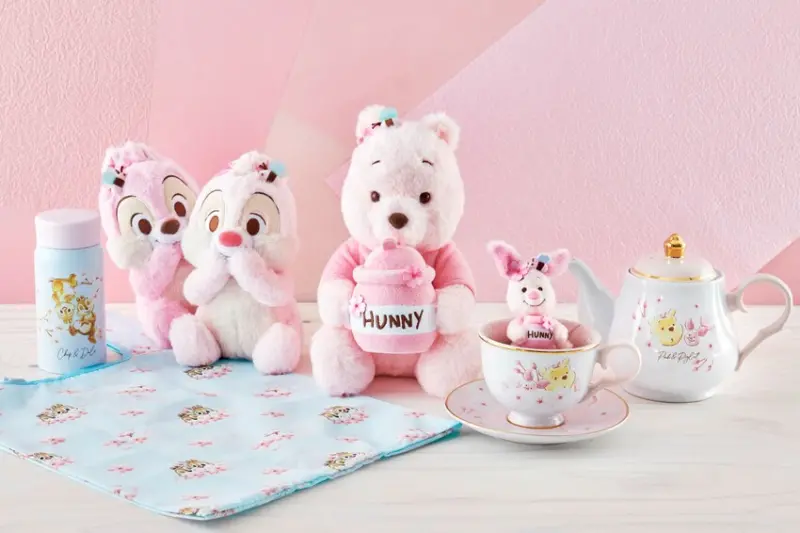 為了迎接春意無限的櫻花季節,日本迪士尼商店將粉嫩櫻花與奇奇蒂蒂、小熊維尼結合,推出一系列萌死人不償命的日常生活用品,其中一款粉櫻色抱枕上面印著維尼和小豬在櫻花樹下抬頭賞櫻的呆萌模樣,絕對是維尼鐵粉必收經典周邊;而奇奇蒂蒂的部分商品則採用了溫柔的淡藍色做為背景,彷彿這兩隻可愛的花栗鼠在天空下自由自在、活潑好動的樣子。除此之外,還有櫻花色的絨毛娃娃讓人看一眼就印象深刻,還有鑰匙圈、乾洗手、茶壺、茶杯、環保袋等家飾品都滿溢著輕柔的粉櫻元素,就是要陪迪士尼粉絲度過溫和無限的春季時分。