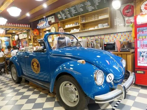 店內佈置成像50年代懷舊元素,包含柑仔店、牙科診所和藥局,座位除了有4人座,及書櫃牆旁的2人座,店內的第二亮點就是這一整面的書櫃牆,上頭擺放各式類型的書籍,還有各種可樂瓶的收集~可以看出店長和小編一樣是念舊的人呀...<全文介紹>
